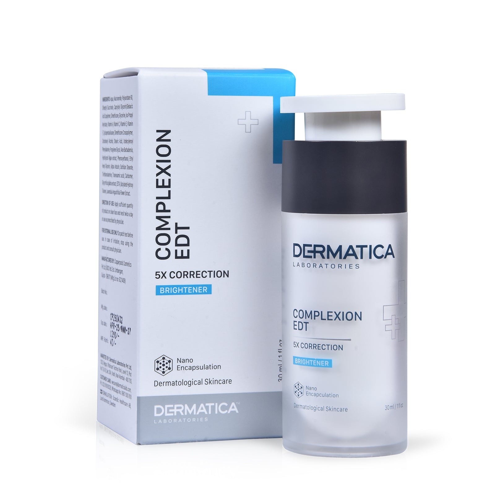 DERMATICA Complexion EDT is a blend of skin brighteners to give an overall complexion improvement. It is suitable for all skin types and is non-comedogenic.